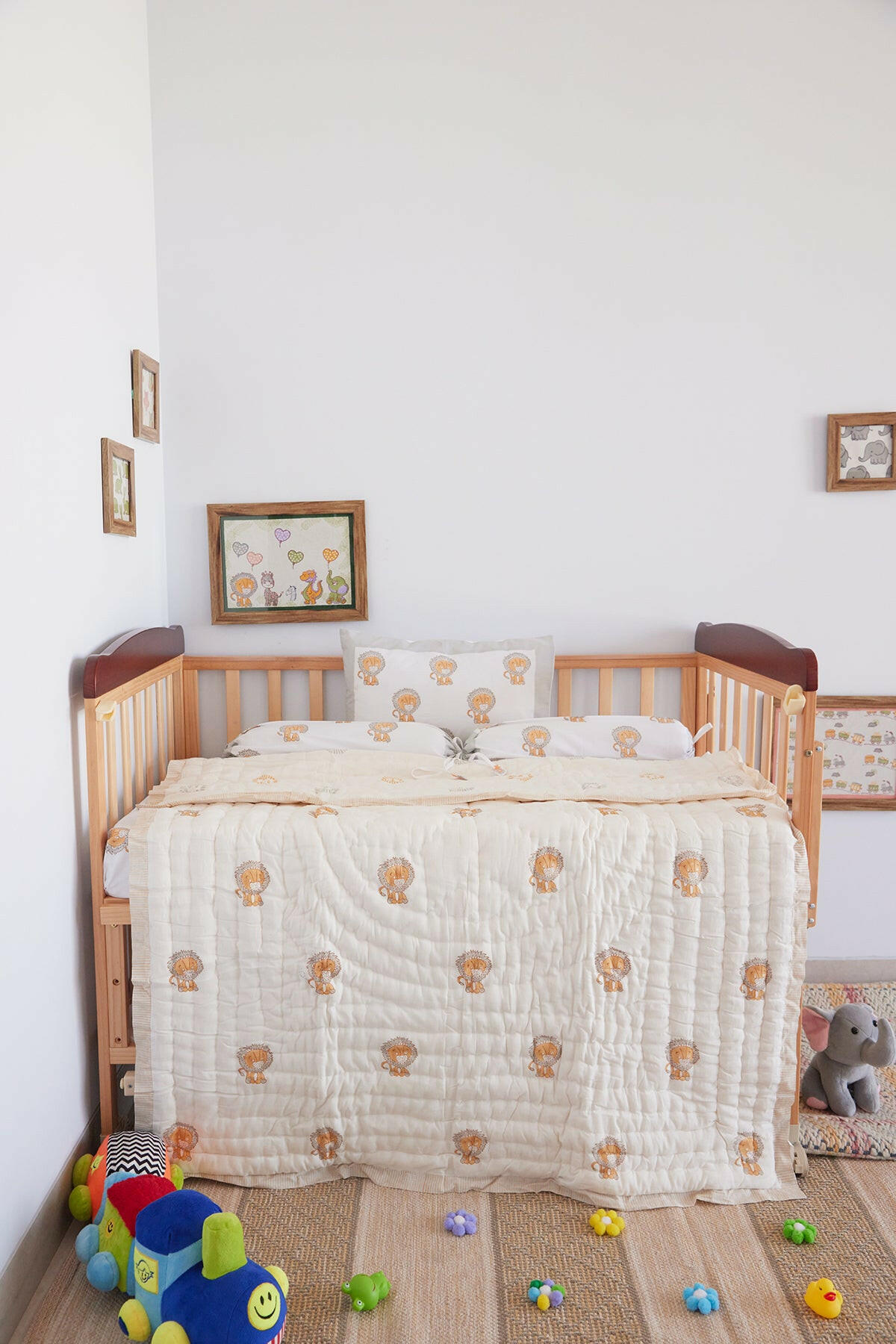 Embrace the magic of new beginnings with a touch of artistry and love. Envelop your little one in the cozy comfort of our hand-block printed soft quilt, crafted to bring joy and warmth.