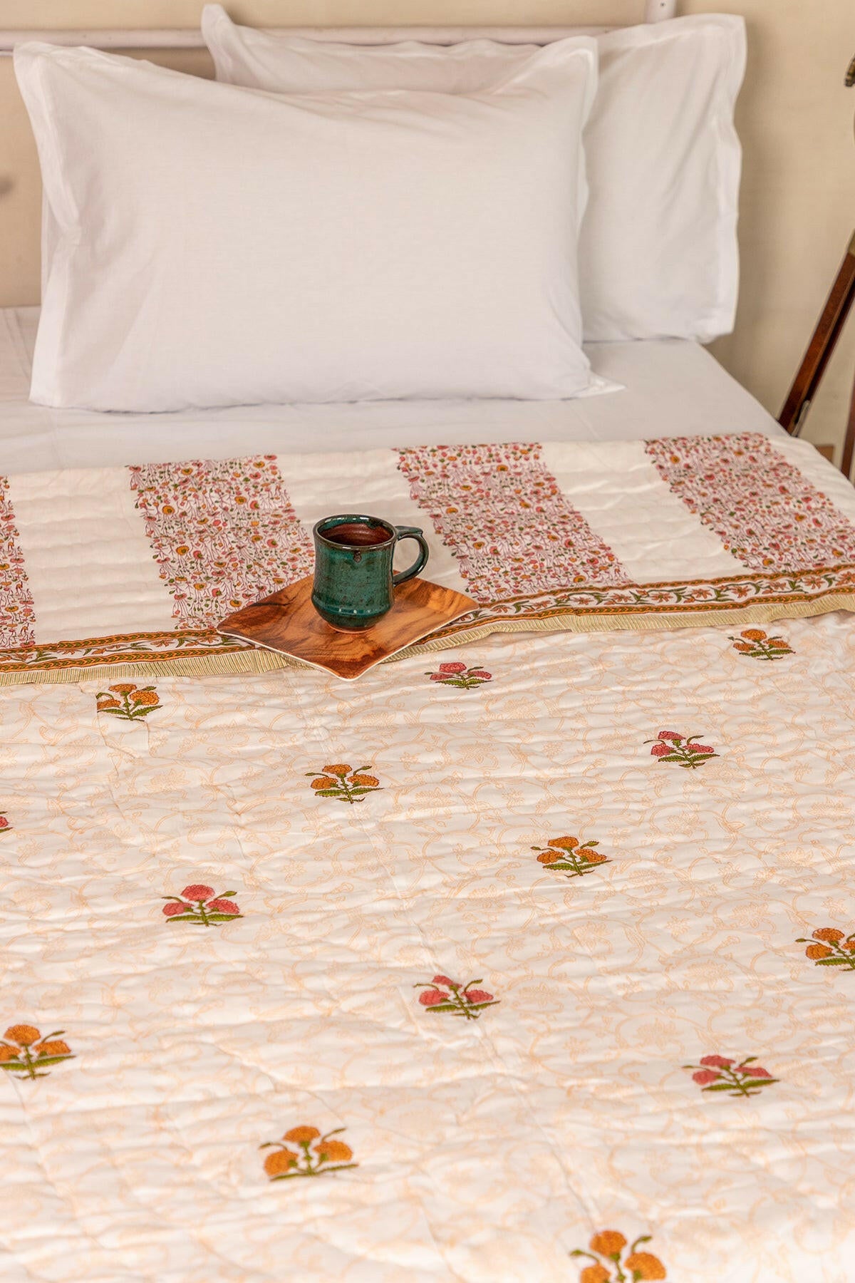 Wrap yourself in the comfort and elegance of our handcrafted Cotton Hand Block Printed Quilt/Razai. Made with love and meticulous attention to detail, this traditional Indian quilt is an epitome of luxury and craftsmanship.