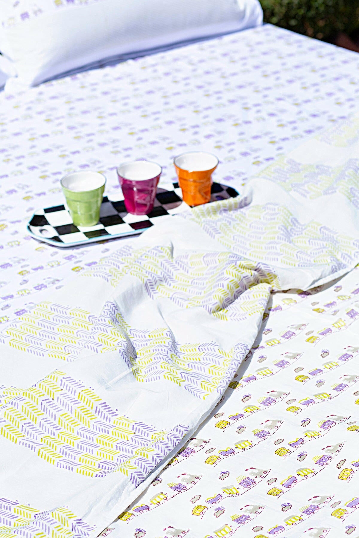 Browse through our delightful collection of double sided Kids Block Print Dohars and discover the perfect addition to your child's room. Wrap your little one in the warmth of our lovingly crafted train print dohars and let their dreams take flight.