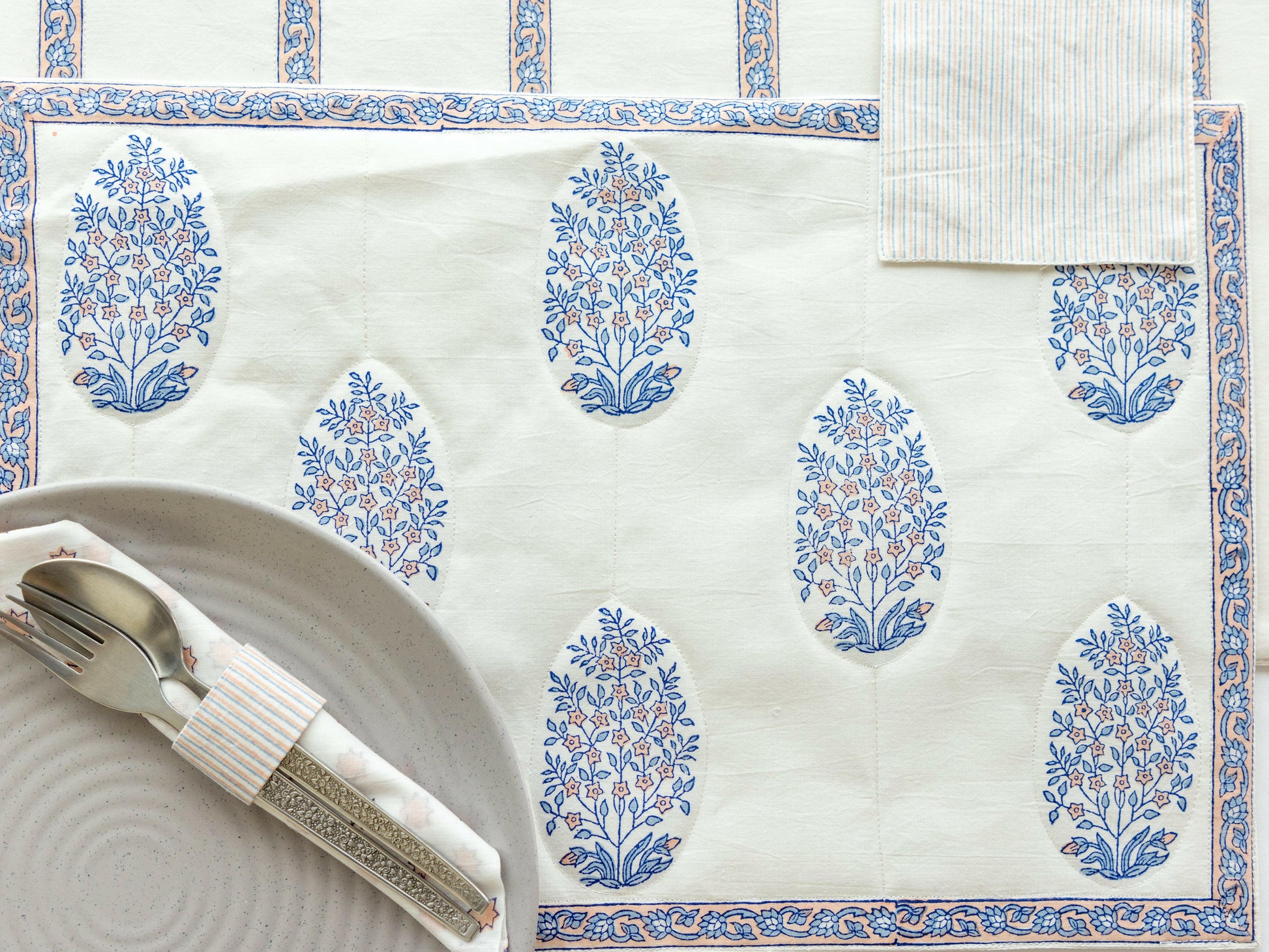 Browse through our collection now & discover the perfect mat set that reflects your unique personality. This quilted White & Blue Table Set is specially curated to evoke the delight of a perfect dining experience.