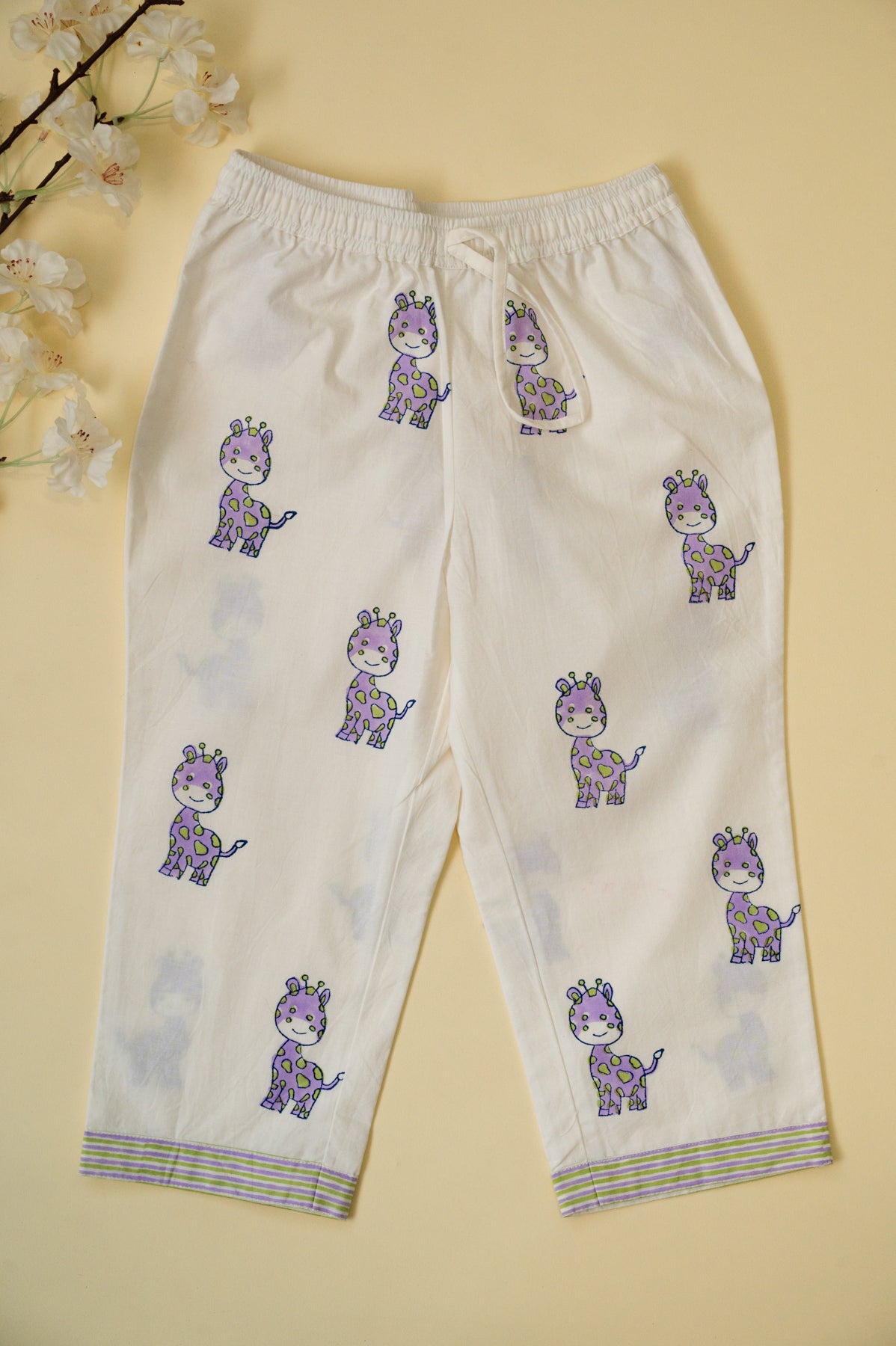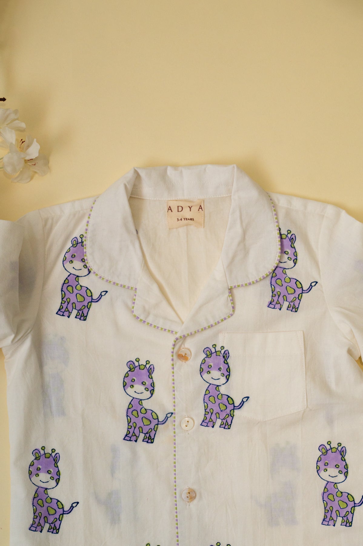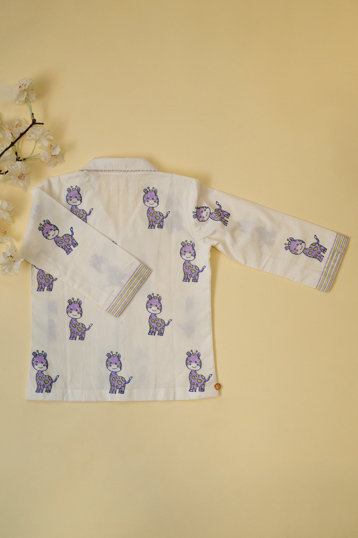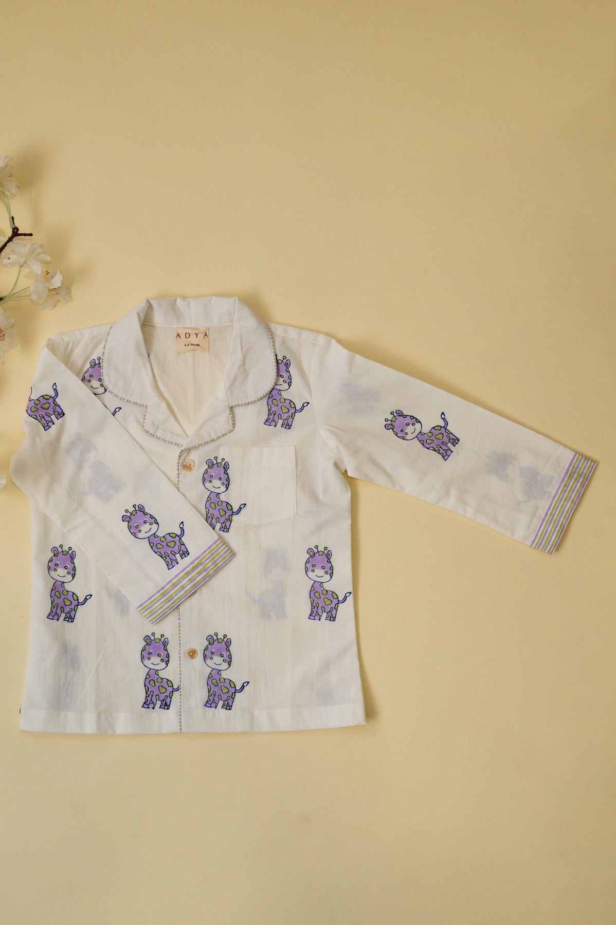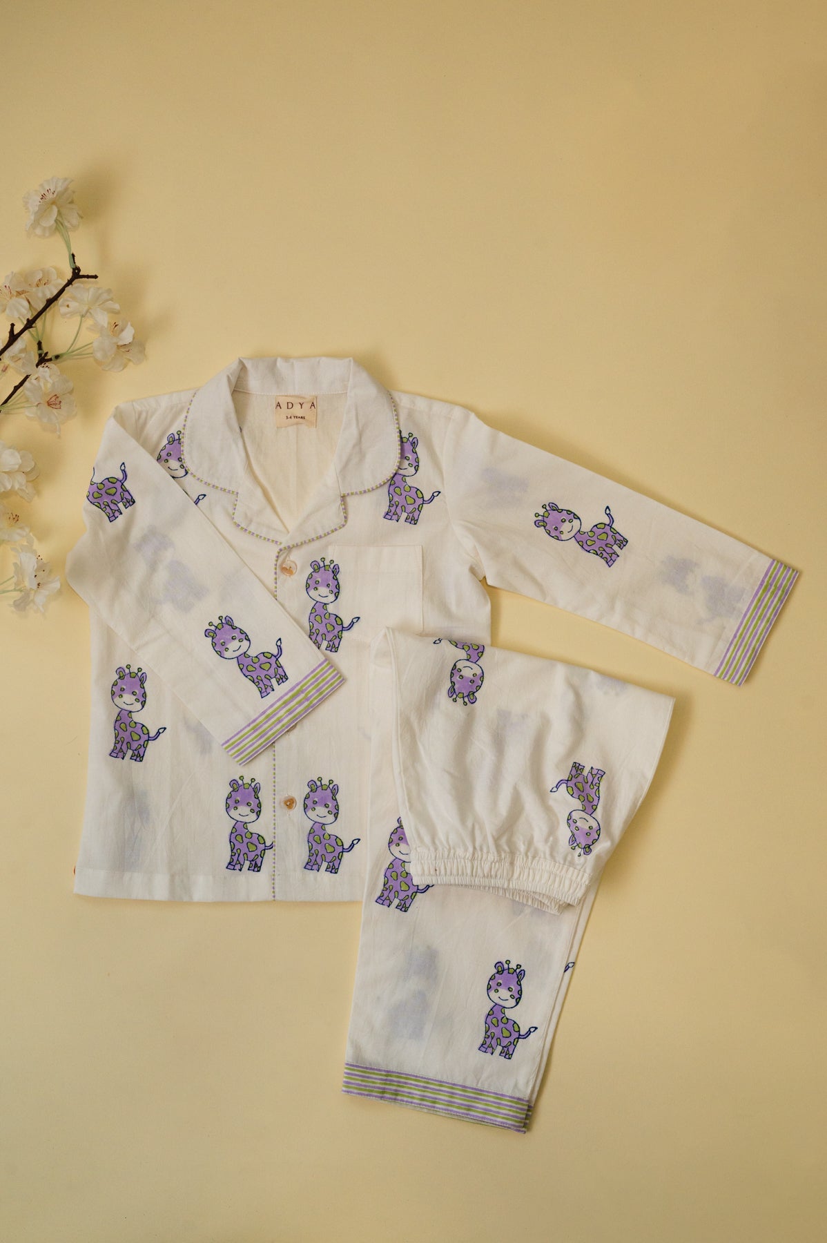 White & Lilac Giraffe Kids Night Suit