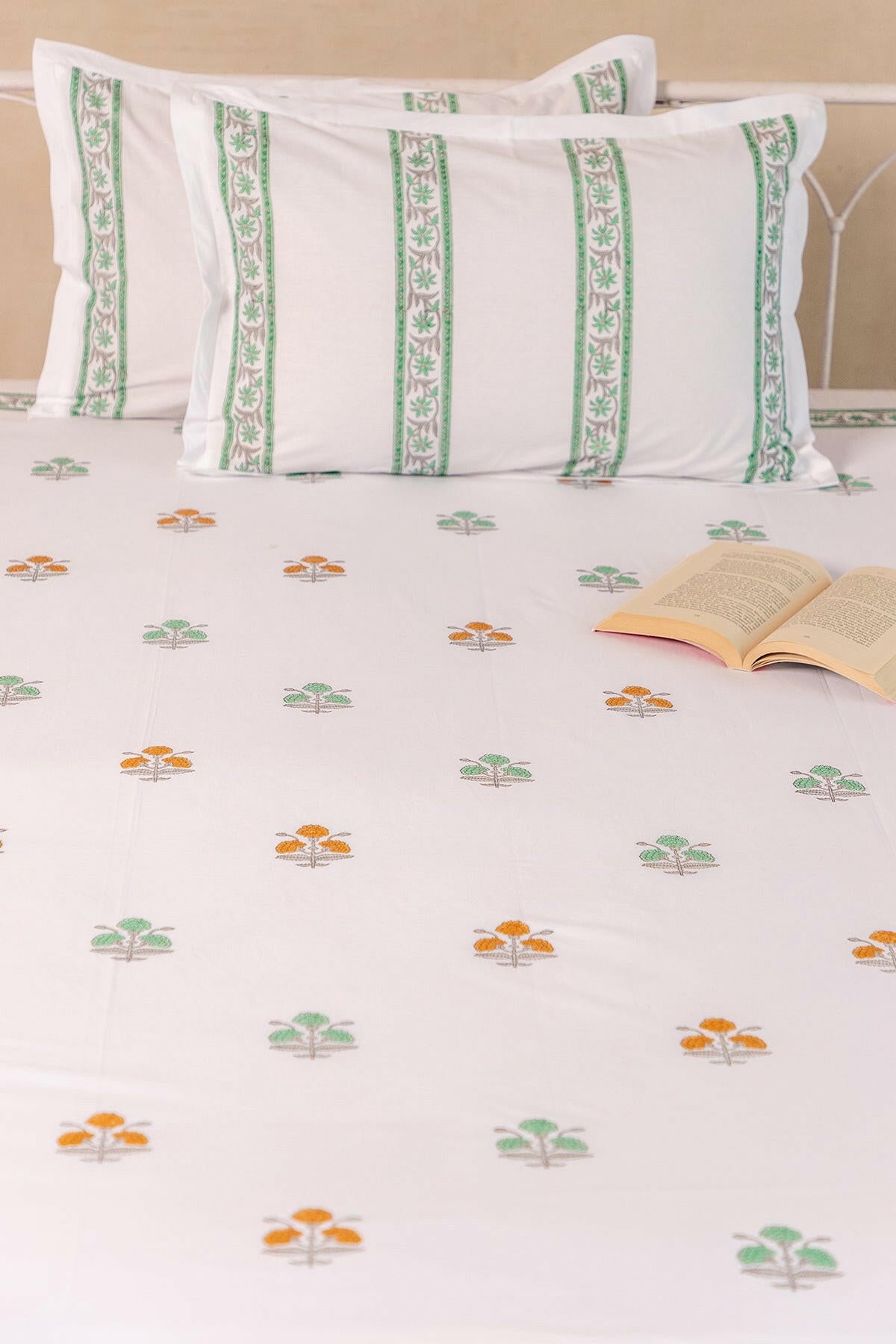 Woodbine & Golden Glow Carnation Pure Cotton Bedsheet