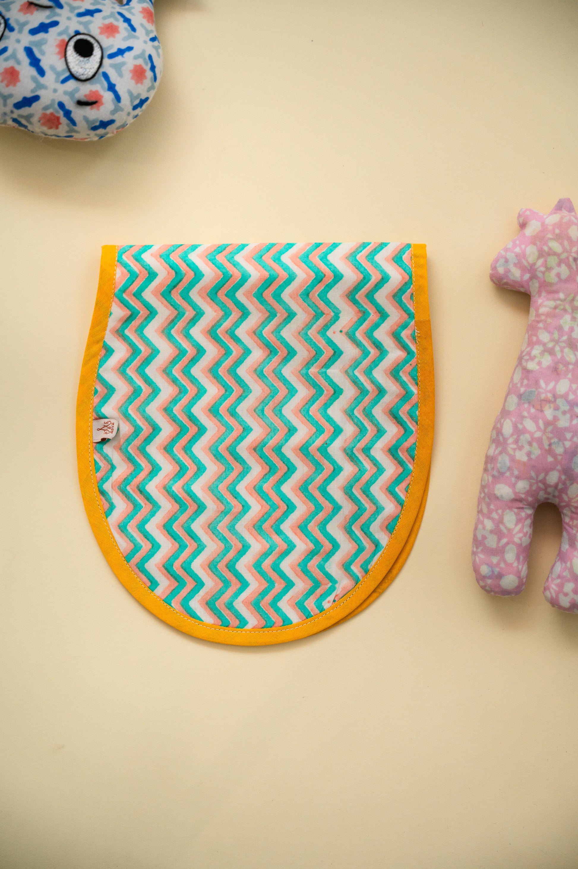 This absorbent cloth is designed to keep both baby and parent mess-free during feeding. Crafted from two layers of cotton with prints on both sides, its unique shape comfortably sits over your shoulder for maximum absorbency.