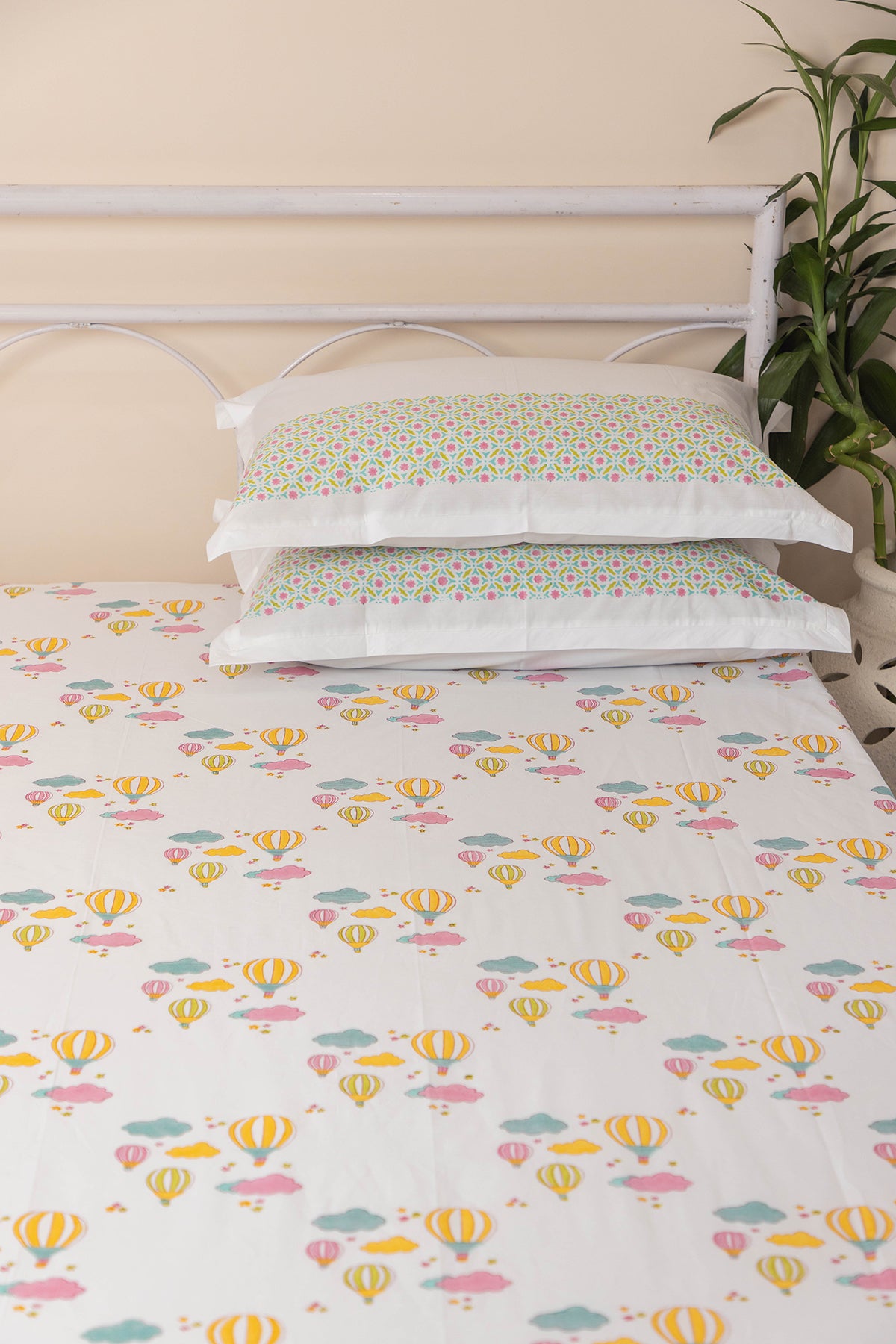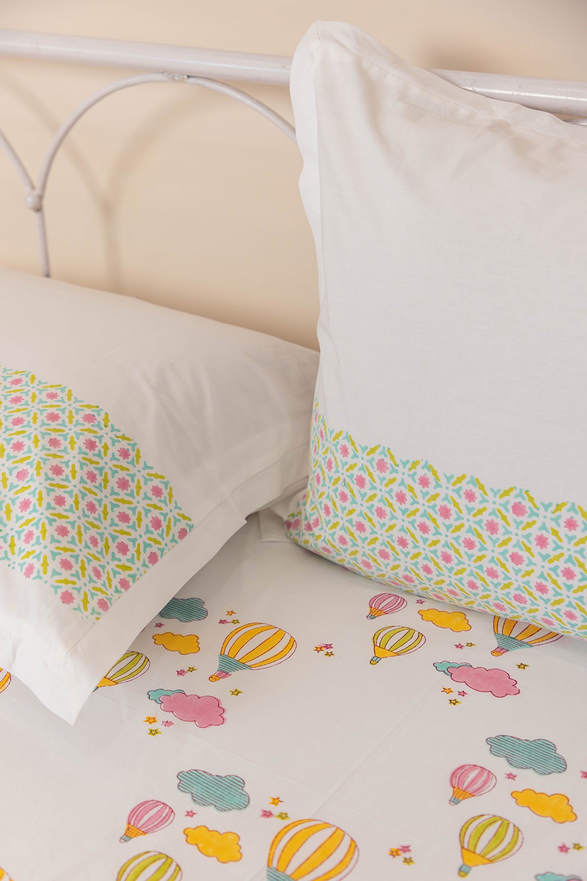 Experience the luxurious comfort of our 100% cotton bed sheet, beautifully hand-block printed with a variety of intricate designs. The bedsheet comes with matching pillow cases (18 IN X 28 IN).